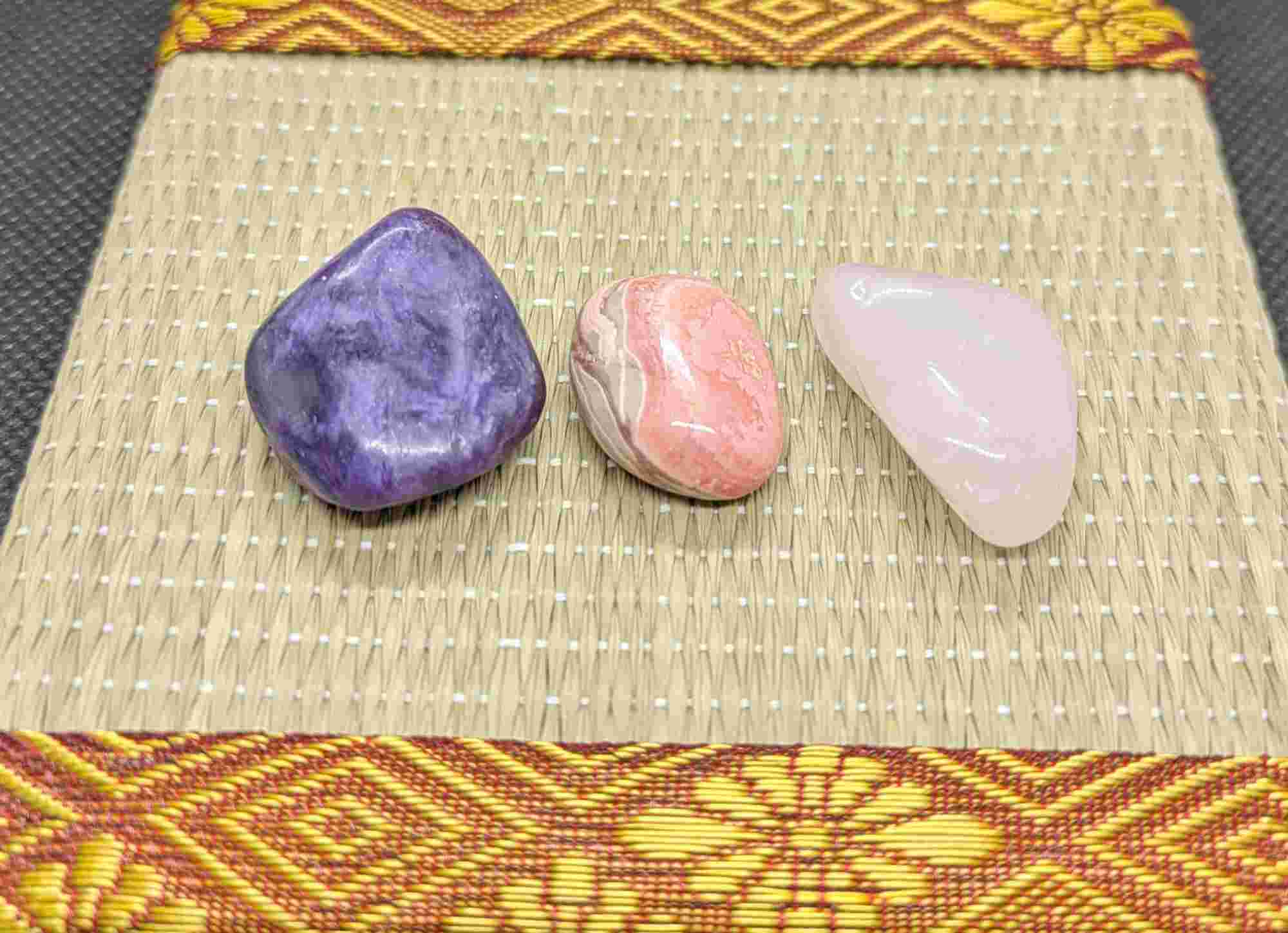 構成石: ローズクォーツ、チャロアイト、ロードナイト(チャロアイトを含むため、最も高価なセットです。)