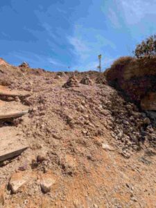 採掘場の周辺は広大な自然に囲まれており、いたるところに石を積み上げた目印や、露出した鉱床が見られます。クリスタリーナは「水晶の町」と呼ばれるにふさわしい土地で、歩くだけでも石のエネルギーに包まれているのを実感します。