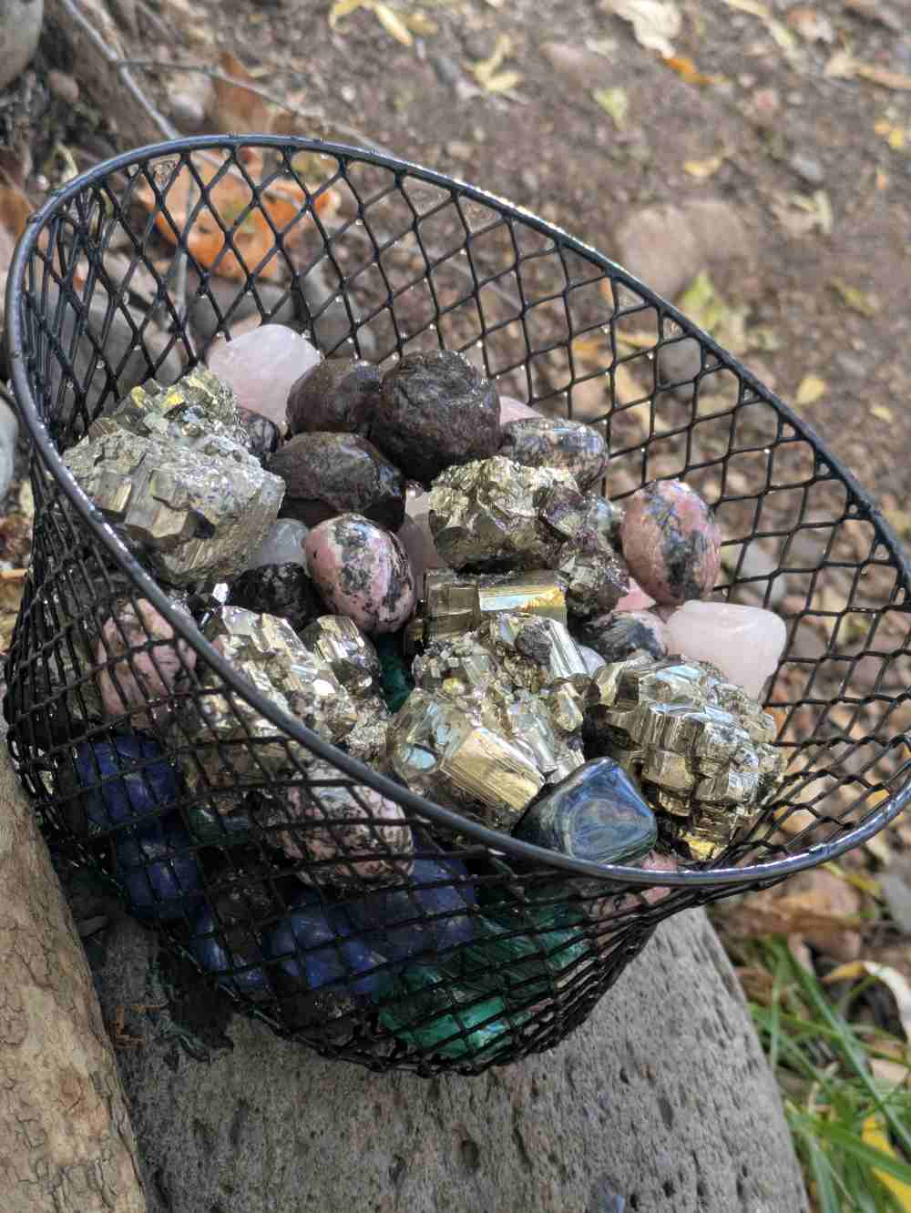 パイライト、モキマーブル、マラカイト、ローズクォーツ、ラピスラズリ、ロードナイト